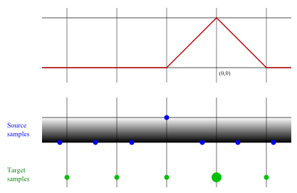 Another crazy idea for fixing the algorithm: instead of basing the target sample on a small number of source samples, base it on an infinite number of source samples; i.e., fit a curve to the source samples, and take its integral.