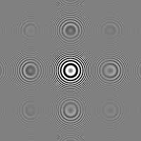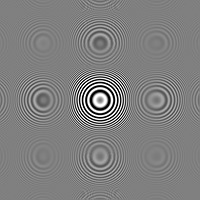 This web site looks at how Photoshop resizes a pathological “rings” image. The Bicubic Sharper filter produces the following result: